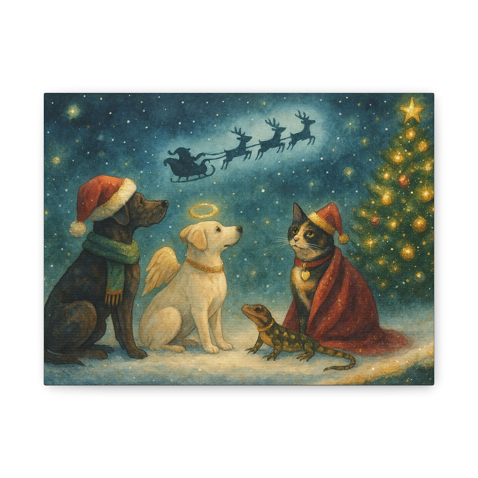 Whimsical Holiday Pet Canvas, Pet or, Dog and Cat Art, Animal Lover Gift